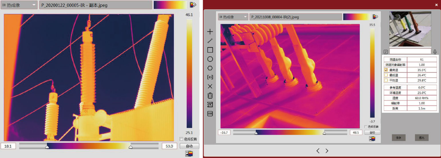 采用制冷型量子阱探測器,能夠在安全距離以外檢測氣體泄露,以成像方式準(zhǔn)確找到SF6氣體泄露點。同時可將物體的紅外譜圖以高清晰度彩色圖像方式進(jìn)行展示,測溫精準(zhǔn)。氣體泄露和測溫結(jié)果以圖像、視頻等方式存儲。