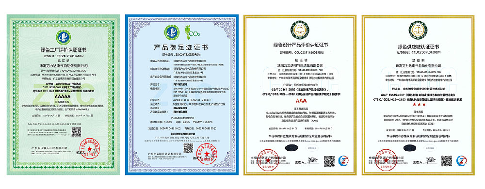 綠色工廠評價認證是對萬力達電氣在環境保護、資源利用和能源管理等方面的認可;產品碳足跡、綠色設計產品和綠色供應鏈則是對萬力達電氣的產品從設計、原材料獲取、生產制造、運輸、銷售、使用和回收利用的全生命周期進行評估,認證其過程中產生的溫室氣體排放總量較低,滿足節能低碳、可持續發展的綠色環保要求。多項權威認證體現了萬力達電氣具備綠色低碳技術、產品、服務的創新能力和供給能力,為進一步提升綠色制造的管理水平筑牢了堅實屏障。