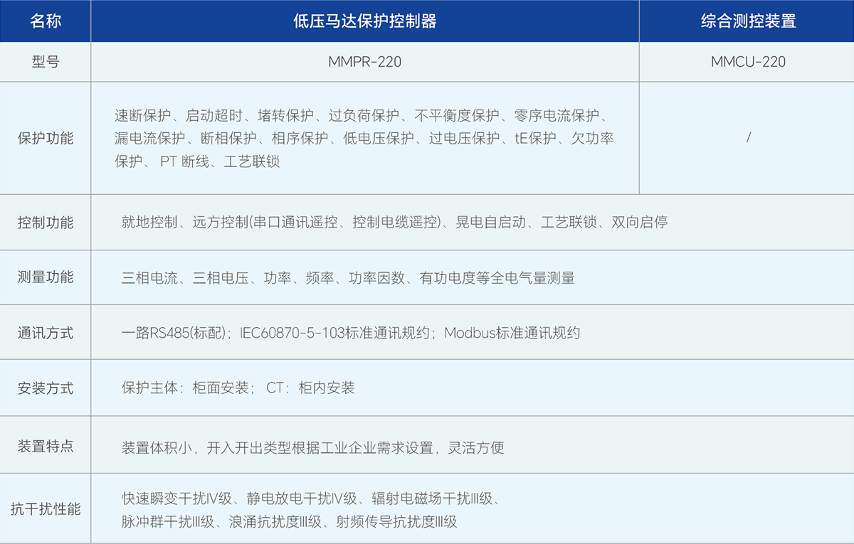 MMPR-220系列低壓保護控制器適用于380V-690V的低壓系統中,可實現對低壓電機和低壓線路的保護、控制、測量等功能。并具有豐富的通訊功能,可滿足不同系統對低壓電機和低壓線路的控制與監測需求。該系列控制器體積小,安裝方式多樣,功能齊全,可方便的使用于老站改造及小型抽屜柜的安裝。