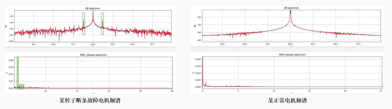 通過分析電流信號,MCSA 能快速提取 RS 信號,監(jiān)測機(jī)械故障引起的轉(zhuǎn)頻邊帶幅值變化,并結(jié)合多種故障特征值判斷故障類型。